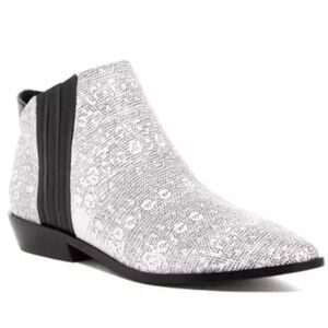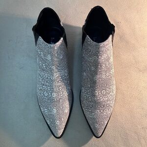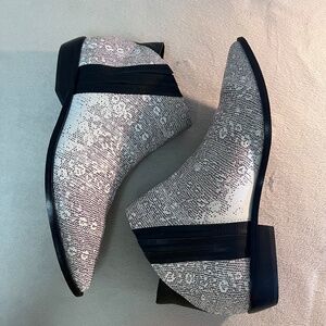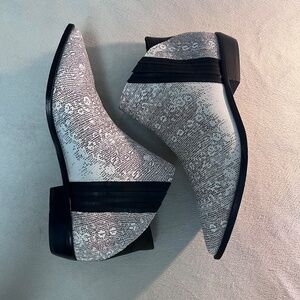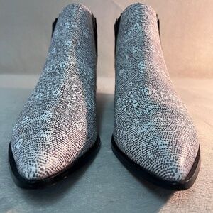 L.A.M.B. Women's Mayor Lizard Print White Pointy Toe Ankle Booties Shoes Sz 10