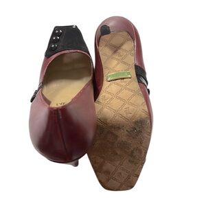 Step out in style with these elegant L.A.M.B. heels. Featuring a striking red and black design, these shoes are perfect for any occasion. The sleek silhouette and bold colors make a statement.