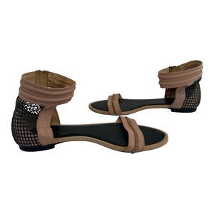 L.A.M.B. Women's Size 10 Leather Ankle Strap Sandals Nude Black Zip Back