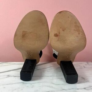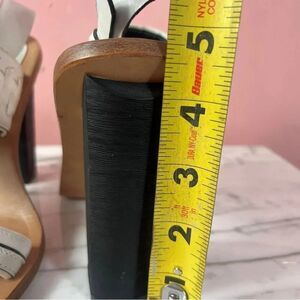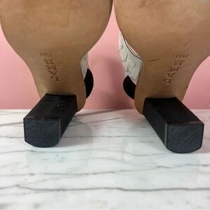 L.A.M.B Women’s Valiant Heeled Sandals Leather White Black 7.5 5” Heel