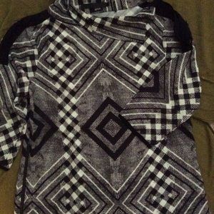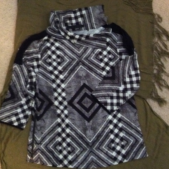 Designer octa-print blouse~chiffon~side zippers on waist~ draped neck w/buttons on left side from neck to midshoulder...