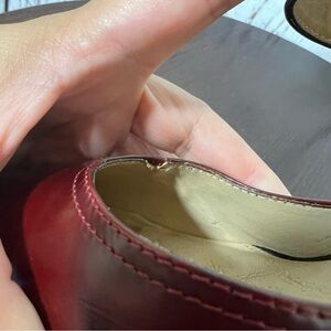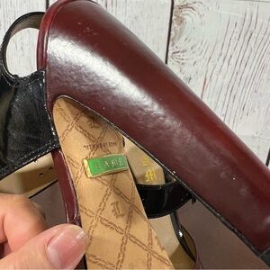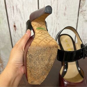 Red leather front toe box with black patent leather ankle wraps !