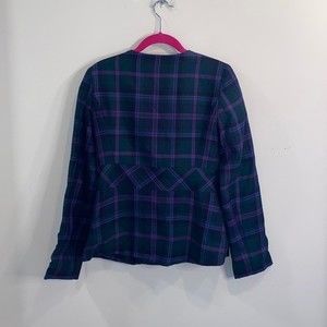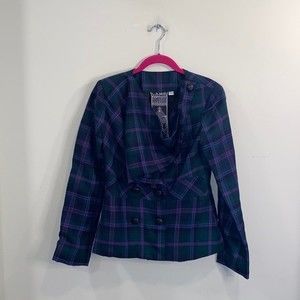 This is the plaid draped collar blazer from the fall 2008 collection by L.A.M.B. in size 6. This blazer was seen on Blair Waldorf (played by Leighton Meester) on Gossip Girl. It is in excellent condition! Thanks for looking!!