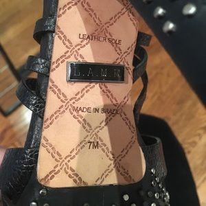 Platform heels by LAMB. Lightly used, but still in excellent condition. Darling with skinny jeans or a dress. Accented with rhinestone stud stiletto heel.