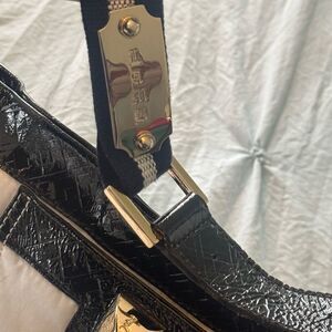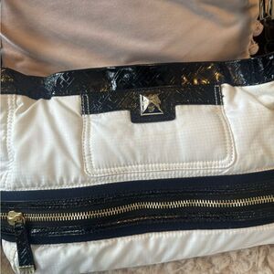 L.A.M.B. Gwen Stefani Stylish Black and White Nylon and Patent Shoulder Bag