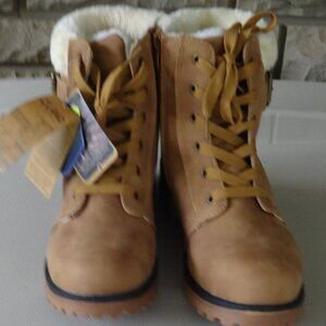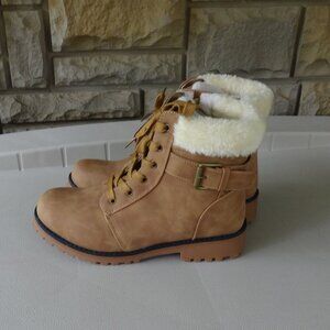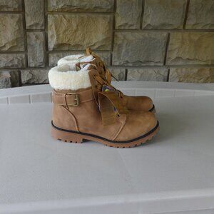 LAMO APRES women's boots size 8, tan, side zip, lace up, faux fur lining insole