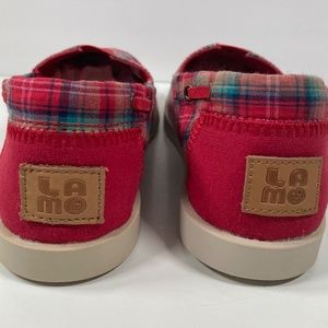LAMO Boat Shoes Loafers Flat Size 7 Red/Multicolor Plaid Fabric SW1302 Coast NEW