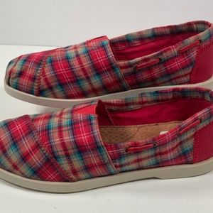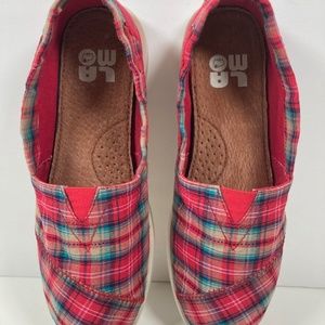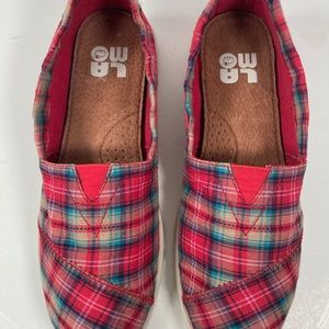 Red/Multicolor plaid LAMO slip on boat shoes...NEW - Size 7