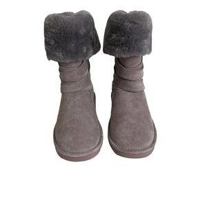 LAMO Women's Cozy Winter Boots Suede Sheepskin Fur Leather Taupe Gray Size 8
