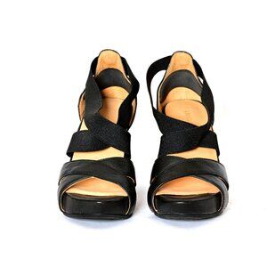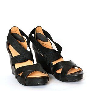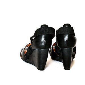 L'AMOUR DES PIEDS Paris "INESA" Black Leather Strappy Wedge Heels Size 7 M