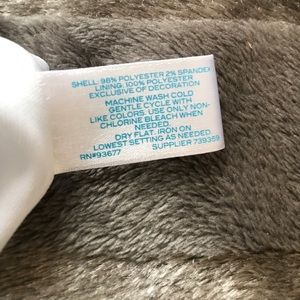 Worn once, approx 32" long, lined, gold zipper, lower back has an opening and upper back has a mesh heart. Please ask any questions.