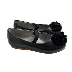 L'AMOUR Girls Black Flower Slip On Flats 8
