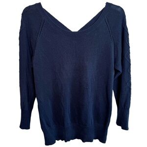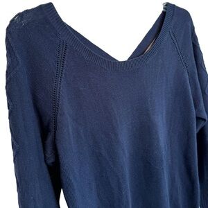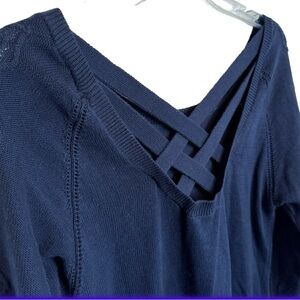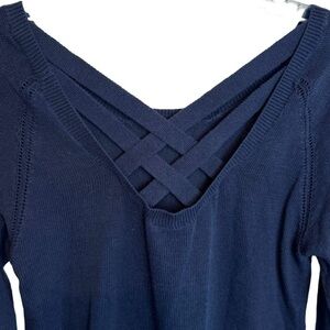 LAMade Navy Blue V-Neck Cotton Sweater Sz Small Criss Cross Back Straps