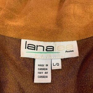 LanaLee faux suede camel coloured open front asymmetrical cardigan sweater Sz L