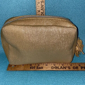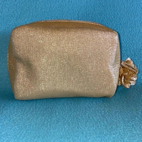 LANCÔME metallic gold makeup bag gold flower zipper pull tiny flaws NEW