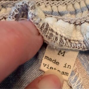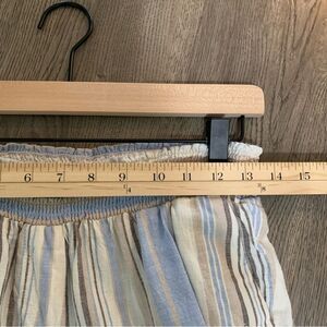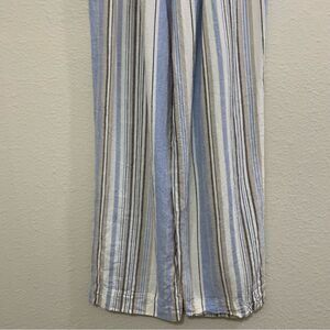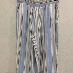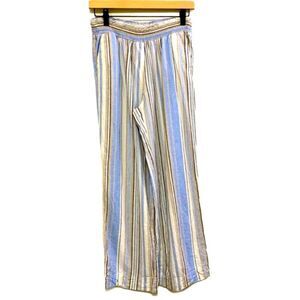 LAND N SEA PANTS WOMEN’S MEDIUM STRIPE CREAM BLUE BROWN 55% LINEN BLEND BEACHY COTTAGE CORE WIDE LEG