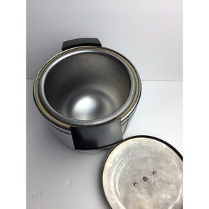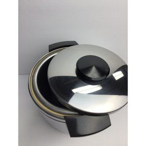 A chromium American Art Moderne circa late 1930's-1940's Ice bucket by Landers, Frary & Clark "Universal". It is in very good vintage condition with the usual minor surface wear typical of a utilitarian piece this age. The handles and lid knob are bakelite, New Britain, Conn and Made in USA are on the bottom. It is 9"" handle to handle by 7"" from bottom to the top of the lid. Insulated By Stanley Corporation