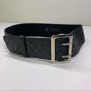 LANDES Black Reptile Print Embossed Italian Leather Belt