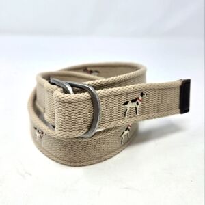 LANDS' END 100% COTTON KHAKI WOVEN BELT EMBROIDERY DOG D-RING YOUTH BOYS LARGE