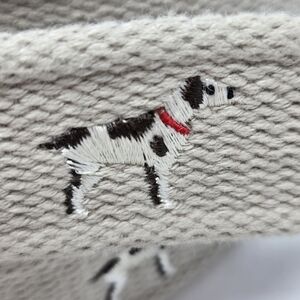 Khaki/light tan with brown & white embroidery dog pattern graphic design.