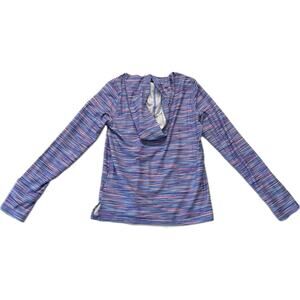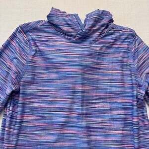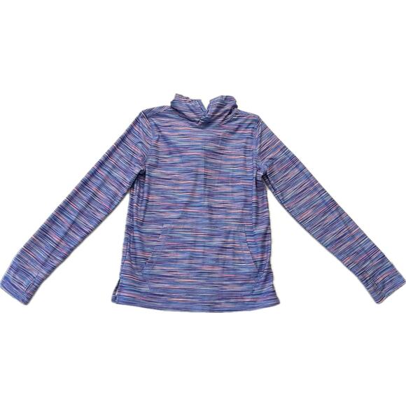 LAND'S END Athletic Pullover Hoodie Girls Youth Size L 10/12 Purple Pink Stripe