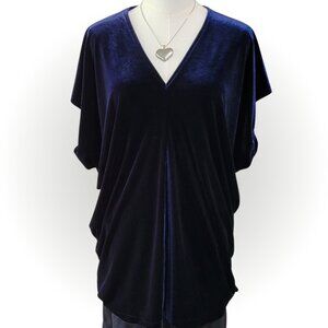 LAND'S END BLUE VELVET VELOUR WOMEN'S TOP BLOUSE EUC L XL