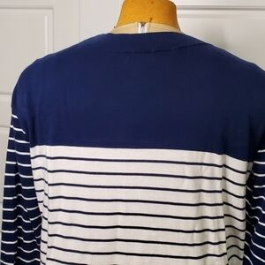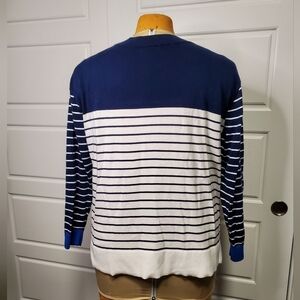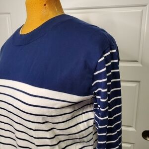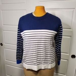 LANDS' END BLUE WHITE MIXED STRIPE COTTON SWEATER WOMEN SIZE XL 18
