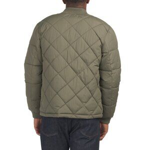 diamond quilted, 2 side zip pockets, 1 interior slip pocket, brand logo zipper pull, ribbed collar and cuffs