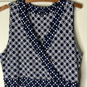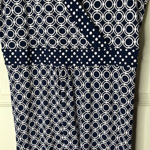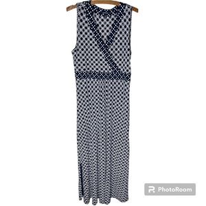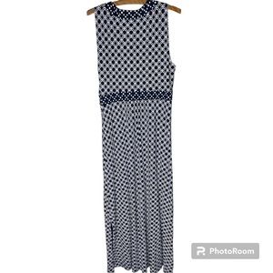 LANDS END Blue and White Polka Dot Geometric Print Maxi Dress Size Large