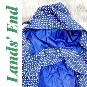 LANDS' END Cobalt Blue Zippered Trench Removable Quilted Liner & Hood, Size XS