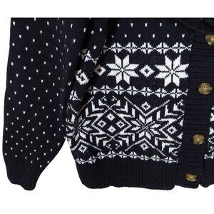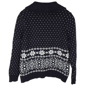 LANDS END Cozy Lofty Jacquard Cardigan Sweater M Fair Isle Nordic Shawl Collar