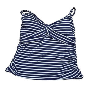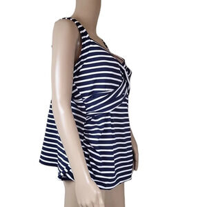 LANDS’ END Deep Sea Nautical Striped Wrap Underwire Tankini Plus