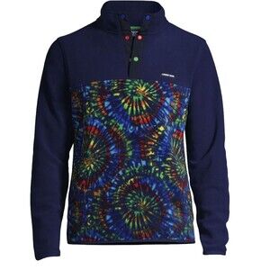 LANDS END Deep Sea Navy Burst Tie Dye Small 6/8 tool snap fleece.