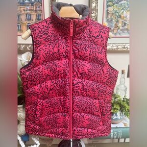 LANDS END Down Filled Puffer Vest Quilted Rose Print Ski Winter Hiking Wear Sz S