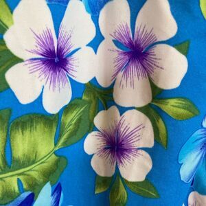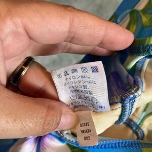 Lands End Floral Tropical One Piece Swimsuit Blue, White, Floral print with Green Tropical Leaves