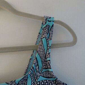 LAND'S END Geometric Floral Print One Piece Swimsuit Stretch Vacation Size 12DDD