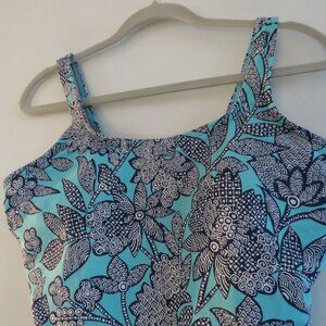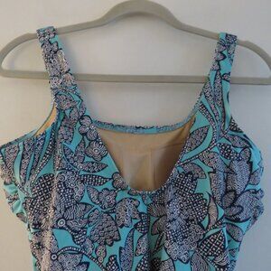 LAND'S END Geometric Floral Print One Piece Swimsuit Stretch Vacation