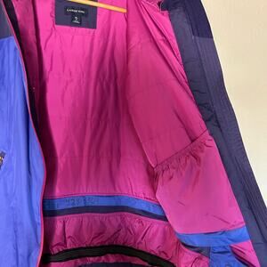 LANDS END Jacket Lightweight Blue Pink Ski Front Zip Side Pockets Inner Waist Cinch Hook and Loop Adjustable Sleeve Cuffs Water Resistant