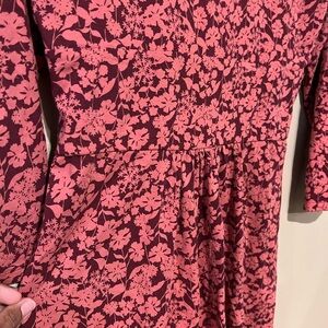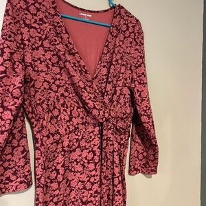 LAND'S END LONG SLEEVE DRESS Ponte Knit Faux Wrap Dress SIZE M Pink Floral