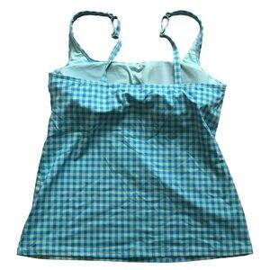 LANDS’ END Light Aqua & Blue Gingham Check Adjustable Strap Tankini Top Size 10