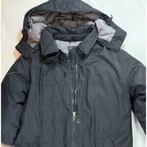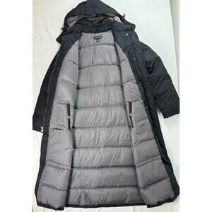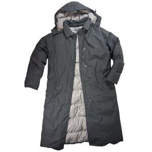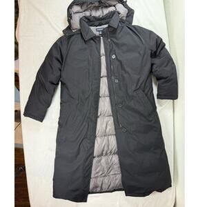 LAND'S END Long Down Coat Sz Medium 10-12 Removable Hood Jacket Parka Black