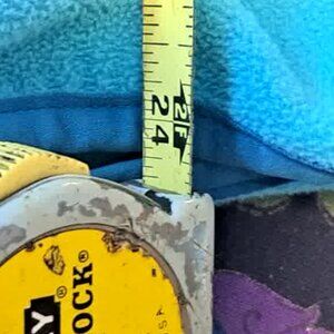 MEDIUM (10-12) Bright blue LAND'S END fleece tunic hoodie with 11.5" zipper and kangaroo pouch. Lightweight warmth. Small spot on sleeve in pictures, priced accordingly.
