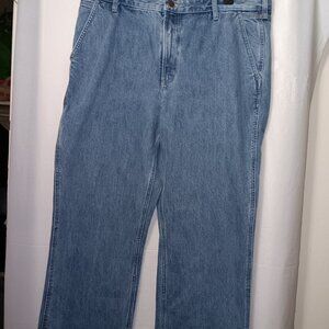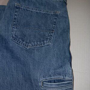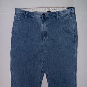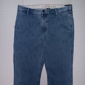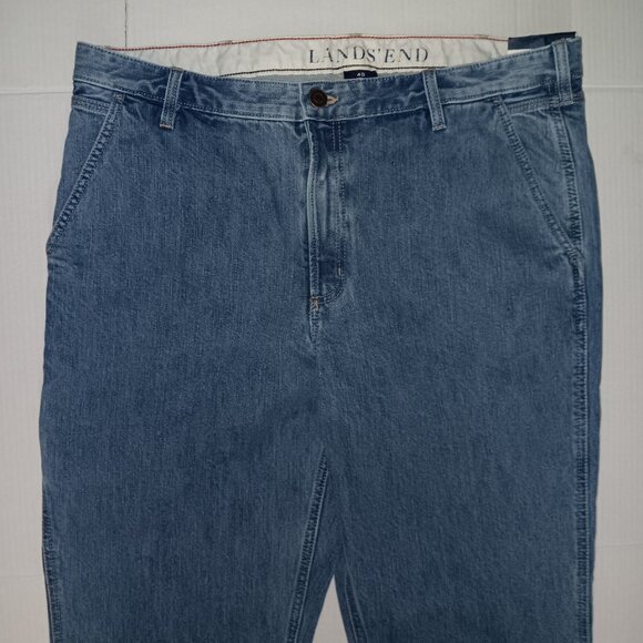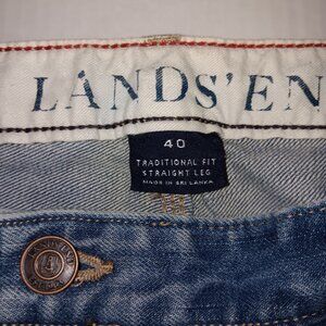 Size 40 Men's - LANDS' END Blue color traditional fit straight leg jeans with Functional pockets Also has side pocket for cell phone as seen in photo #7 the Material is 100% BAUMWOLLE