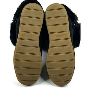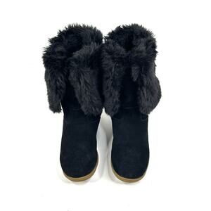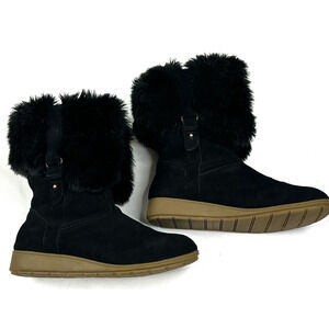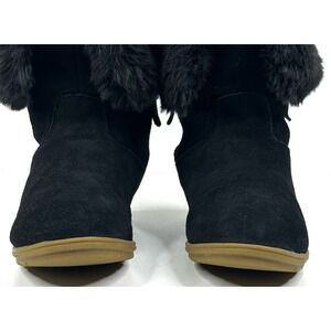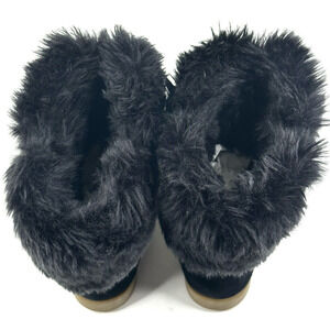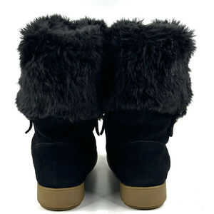 LANDS' END Mendota Black Suede Faux Fur Snow Boots Womens Size 7B Pull-On 420483