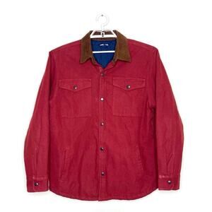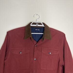 LANDS END Men's Red Cotton Chore Barn Coat Quilted Lined Corduroy Trim L 42/44.