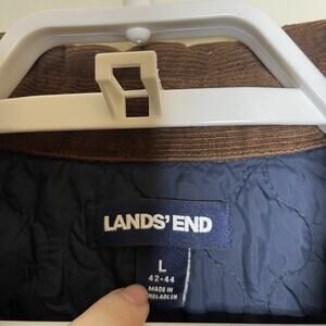 LANDS END Men's Red Cotton Chore Barn Coat Quilted Lined Corduroy Trim L 42/44