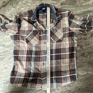 LANDS END Men's Rugged Flannel Shirt Size L Button Up Charcoal Plaid (D1)