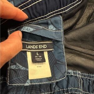 LANDS' END Mens Swim Trunks Ocean Water Blue Tropical Large 36-38 Vacation Lined