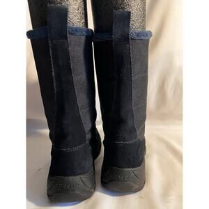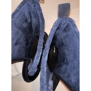 LANDS END NAVY BLUE SUEDE & FABRIC FLEECE LINED MID CALF SNOW BOOT FRONT ZIP 7 B