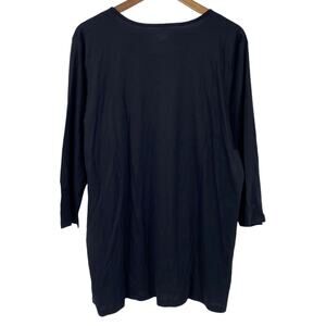 LANDS' END NWOT Black V Neck Lightweight Tunic Shirt Top Size 1X Relaxed Fit 3/4 Sleeves Stretch Oversized